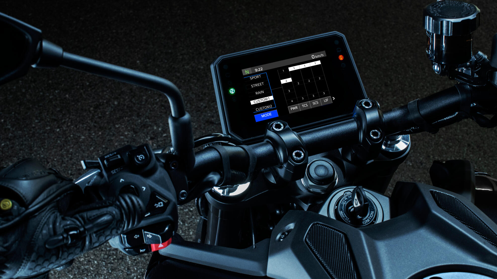 Přizpůsobte si jízdní zážitky pomocí systému Yamaha Ride Control (YRC), který funguje současně s Y-AMT a umožňuje zvolit výkonové charakteristiky motoru a úroveň elektronických zásahů podle vašich preferencí a podmínek na silnici. Tři integrované jízdní režimy jsou naprogramovány s továrním nastavením pro různé situace: SPORT, STREET a RAIN, ale také si můžete vytvořit dva vlastní programy podle svých individuálních preferencí. Nastavení YRC lze přizpůsobit přímo v nabídce přístrojové desky nebo v chytrém telefonu prostřednictvím aplikace MyRide.
