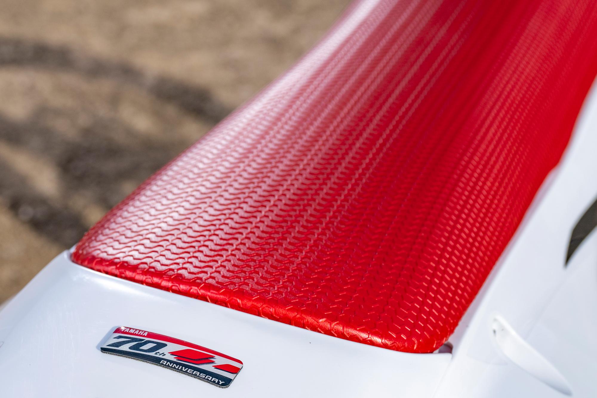 Model YZ450F v edici k 70. výročí má úžasné bílo-červené lakování inspirované modelem YZM400F, vůbec prvním čtyřtaktním strojem, který získal vítězství v motokrosovém mistrovství světa a v AMA Supercrossu, a vzdává hold dlouhé a úspěšné závodní historii značky Yamaha. Inovované prvky kapotáže, ke kterým patří štíhlá a nízké tabulka pro startovní číslo, dvoudílné boční kryty a nový zadní blatník, dodávají stroji moderní vzhled.