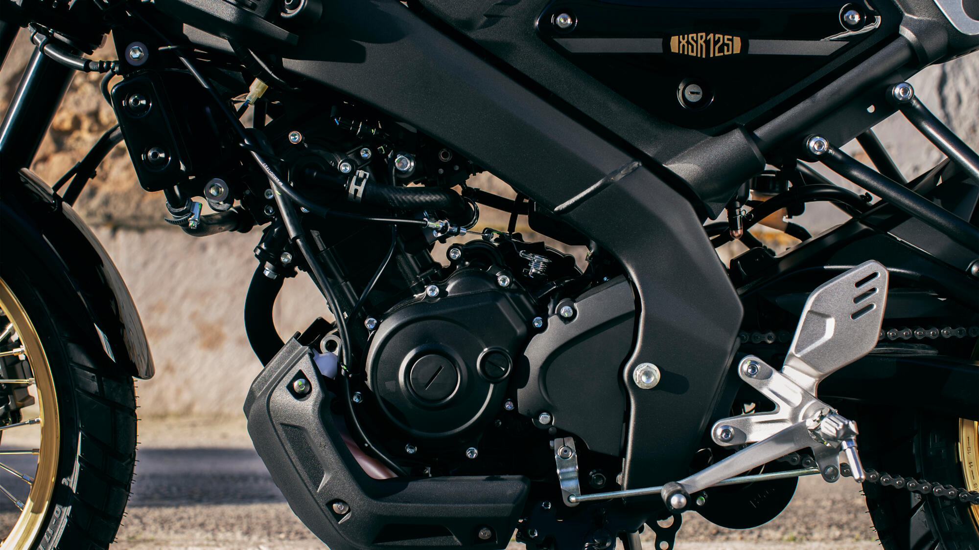 Díky šasi naháči máte možnost vidět mnohé špičkové komponenty, které pouze podtrhují vynikající parametry modelu XSR125 Legacy. Motocykl Sport Heritage o objemu 125 ccm v sobě spojuje skvělou výbavu s čistým a nadčasovým stylem – počínaje paprskovými hliníkovými koly se zlatými ráfky, přes nádherně provedený motor a šasi a lakovanými blatníky konče.